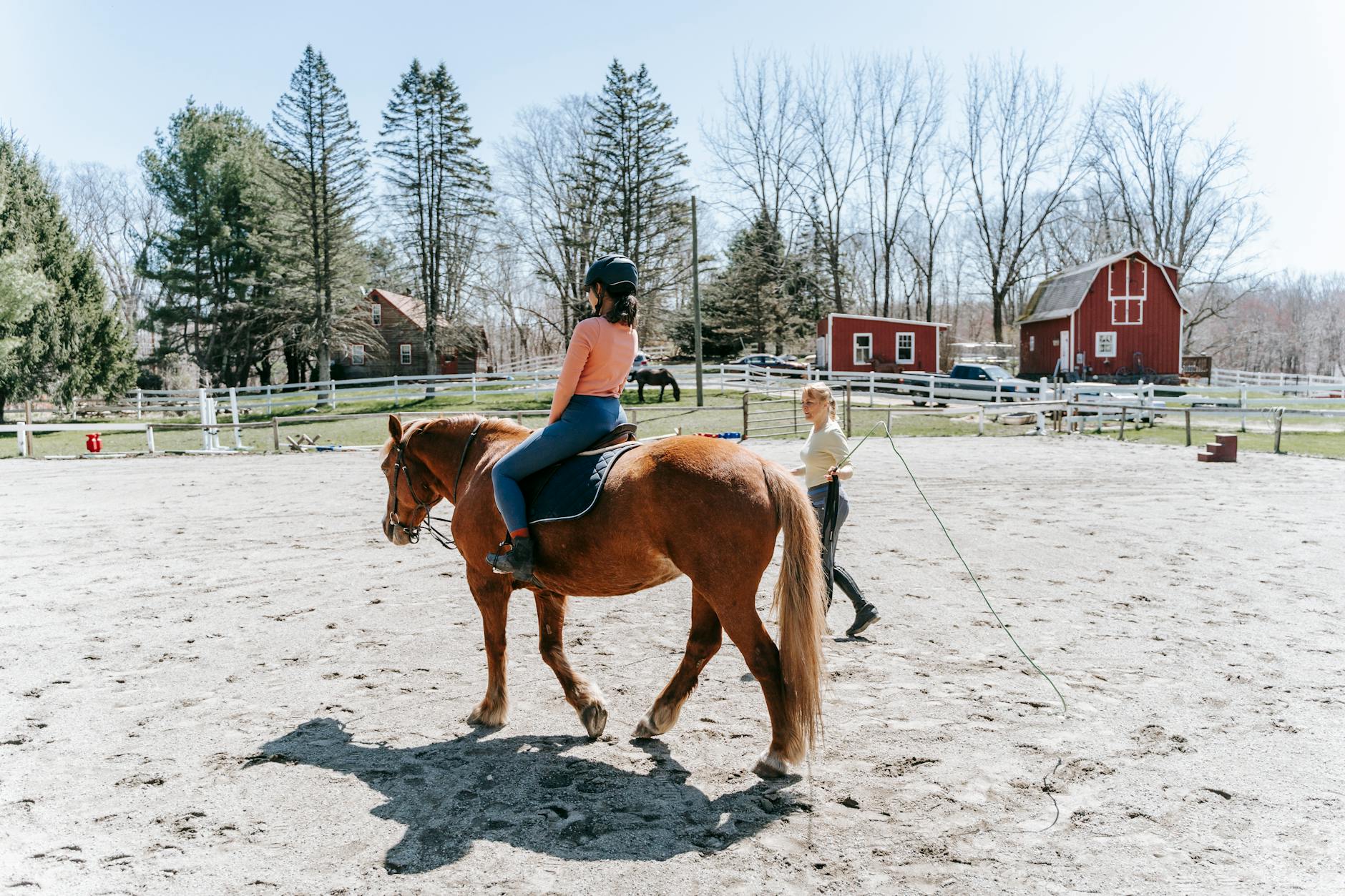 Pro začínající jezdce nabízíme možnost lekcí na lonži. Nejideálnější možnost jak začínat, protože lektor Vás má neustále u sebe, dokáže koně ovládat ze začátku za Vás a tak se dokážete plně soustředit na sed a používání pomůcek.